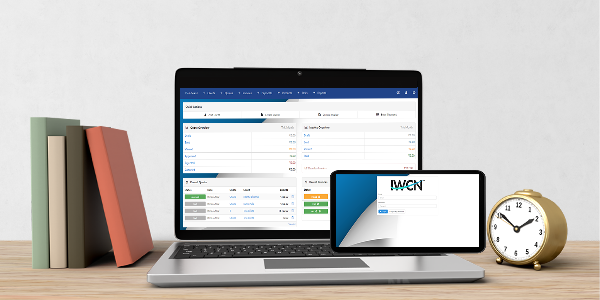 Dashboard:- Our dashboard will summarize the invoicing information and display an overview of different components. You can view the status of invoices, quotes, projects, and tasks in a single place. It allows you to add a client, create an invoice, a quote, or enter any payment in a few minutes. It helps you to get a gist and plan your bills accordingly.